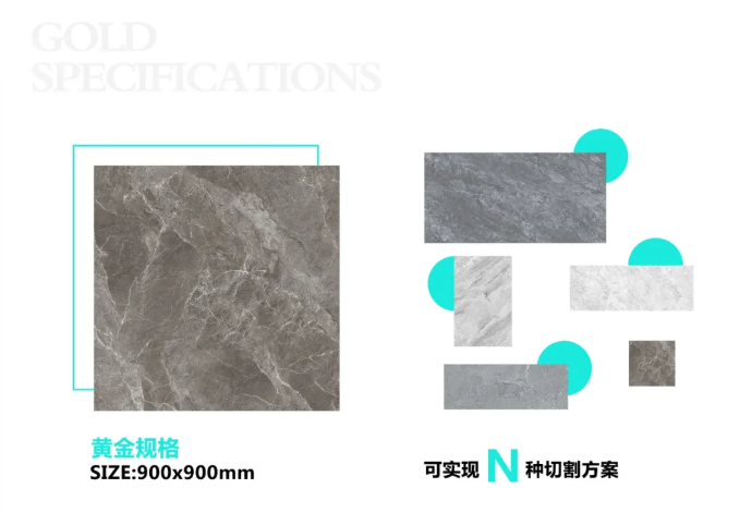 900x900mm规格可谓方正瓷砖界的一股清流,堪称“切割黄金规格”,它既保留了方正规格的优势,亦能通过简单切割,得到多种常规规格的瓷砖,满足百变个性的家居设计需求。