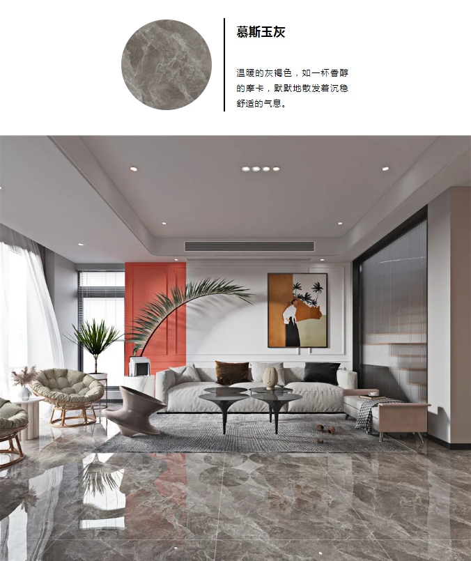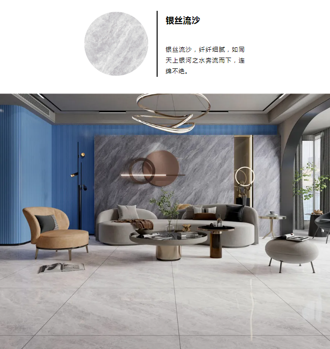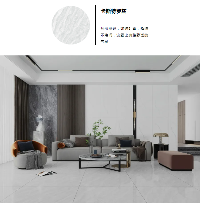 NEO系列900x900mm连纹大理石以珍稀石材为蓝本,在还原天然纹理的同时深化设计,加强纹理层次、质感的视觉效果,让纹理看似流动的效果。