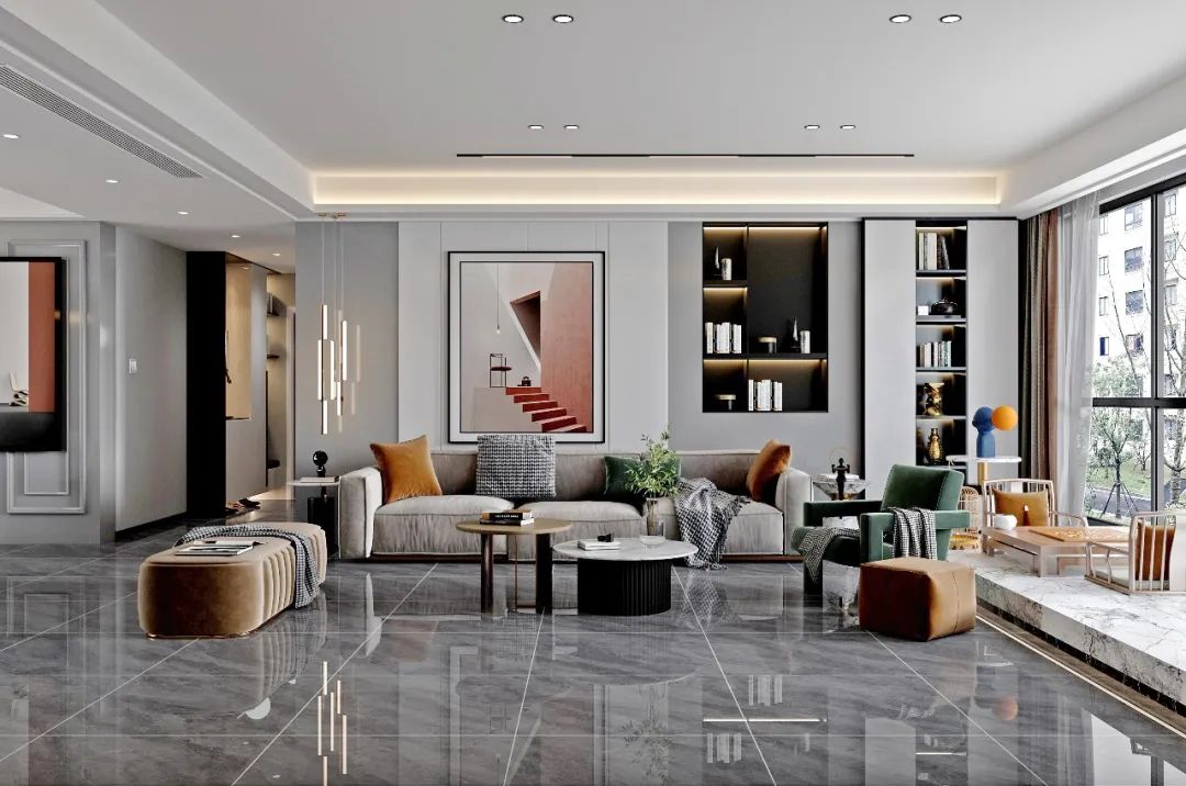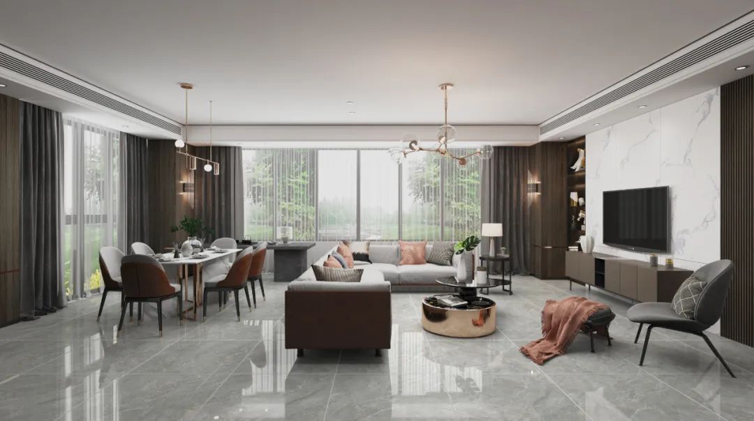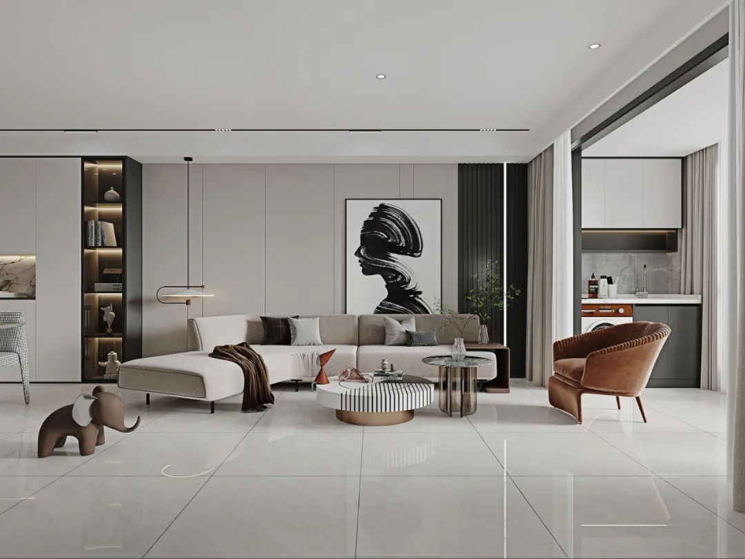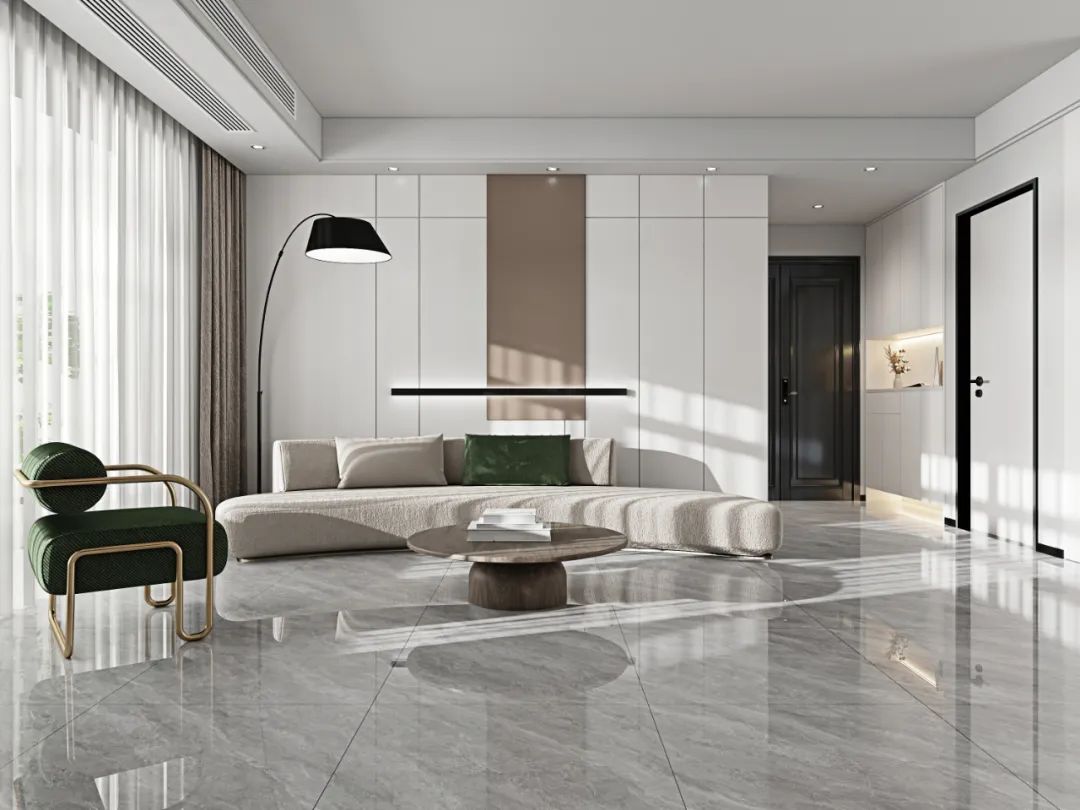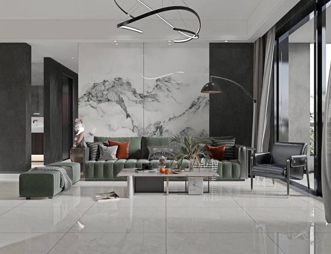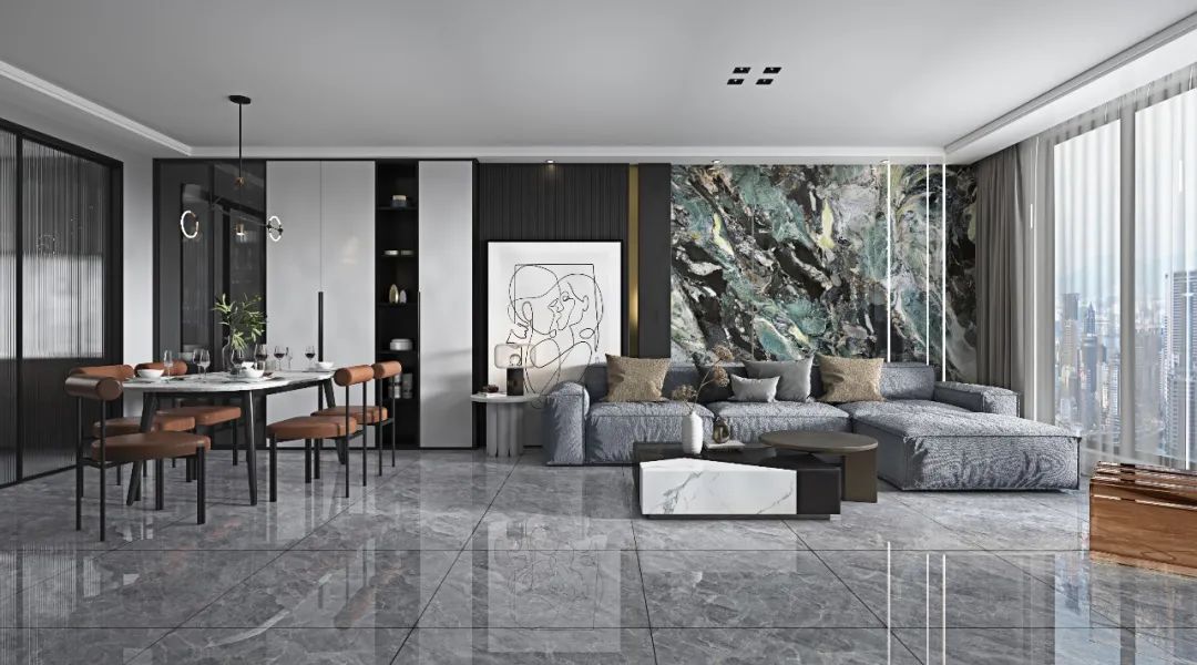 没有复杂的纹理穿插,淡淡的白色线条点缀,明暗交替间纹理变化,既丰富了整体空间的肌理层次,亦能烘托出空间的高级氛围。