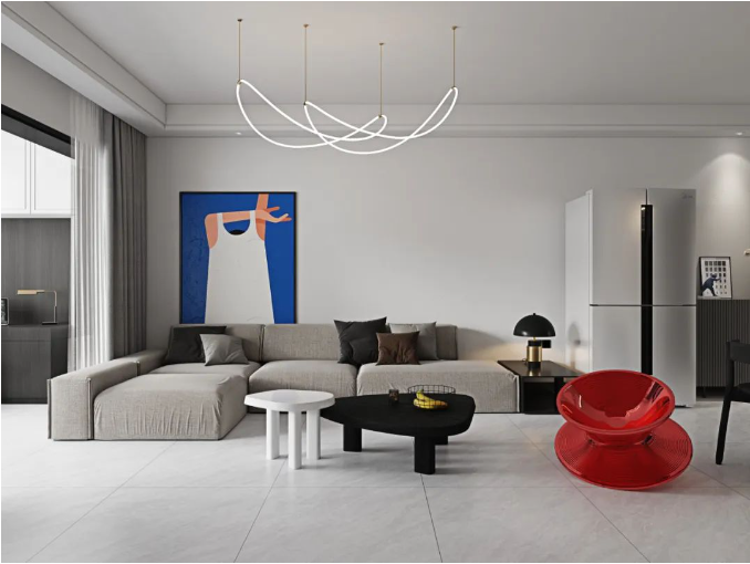 以红色与灰色相映衬,深与浅的碰撞,冷与暖的对比,能让家拥有强烈装饰力和表现力的同时,亦让视觉更舒缓,为空间注入新的活力。