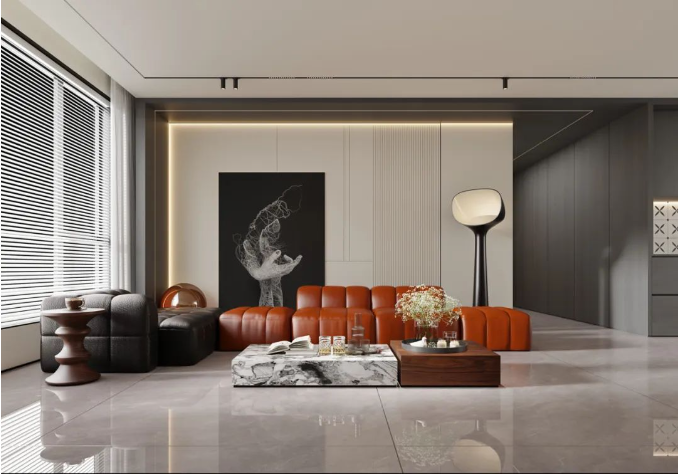 橙色,空间里一抹活力的存在,犹如一个温暖飘逸的阳光少女,传递出快乐和时尚。